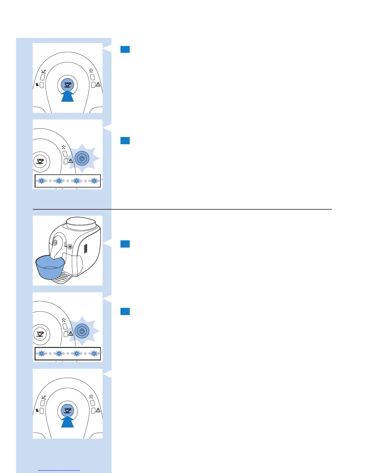 4 Premete il pulsante del caffè. La macchina inizia a erogare acqua calda