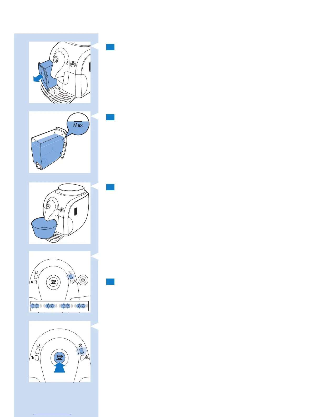 4 Lasciate che l’acqua venga erogata dal beccuccio del caffè nché la