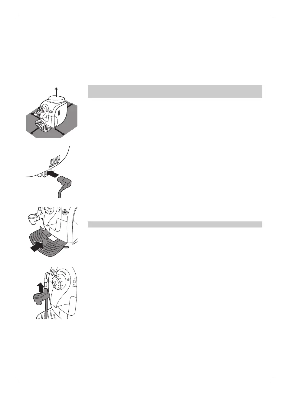 2 Place the machine on a table or worktop away from the tap, the sink and