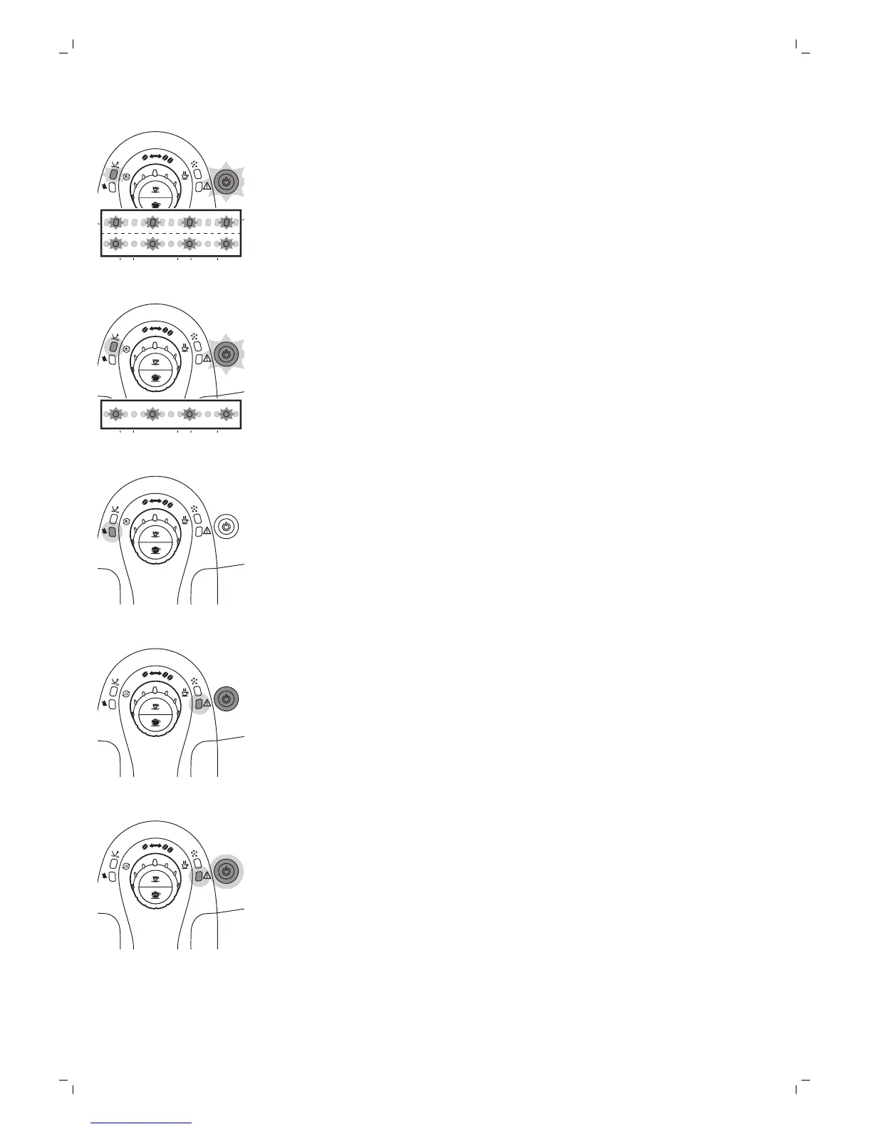The warning and on/off button lights light up continuously. The coffee