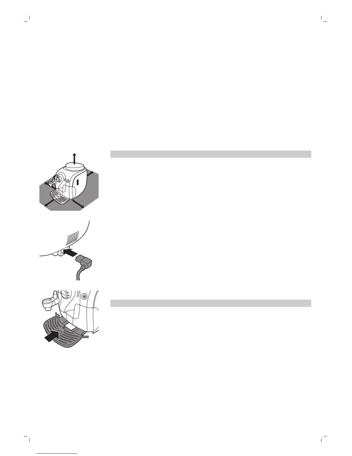 注意: 咖啡機的上方、背面及兩側必須至少保留 15 公分的間隔距離。