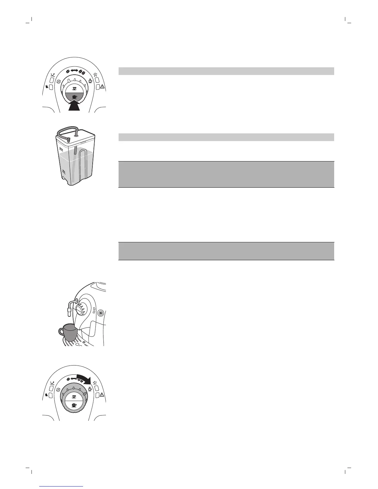 1 請依照「沖煮卡布奇諾咖啡」一節中的步驟 1 至 5,將控制鈕轉到蒸氣/牛奶清