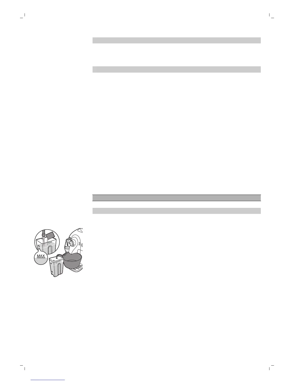 6 拆下咖啡機的吸塵管。 徹底清洗牛奶罐,然後以清水裝滿至 MAX 刻度。