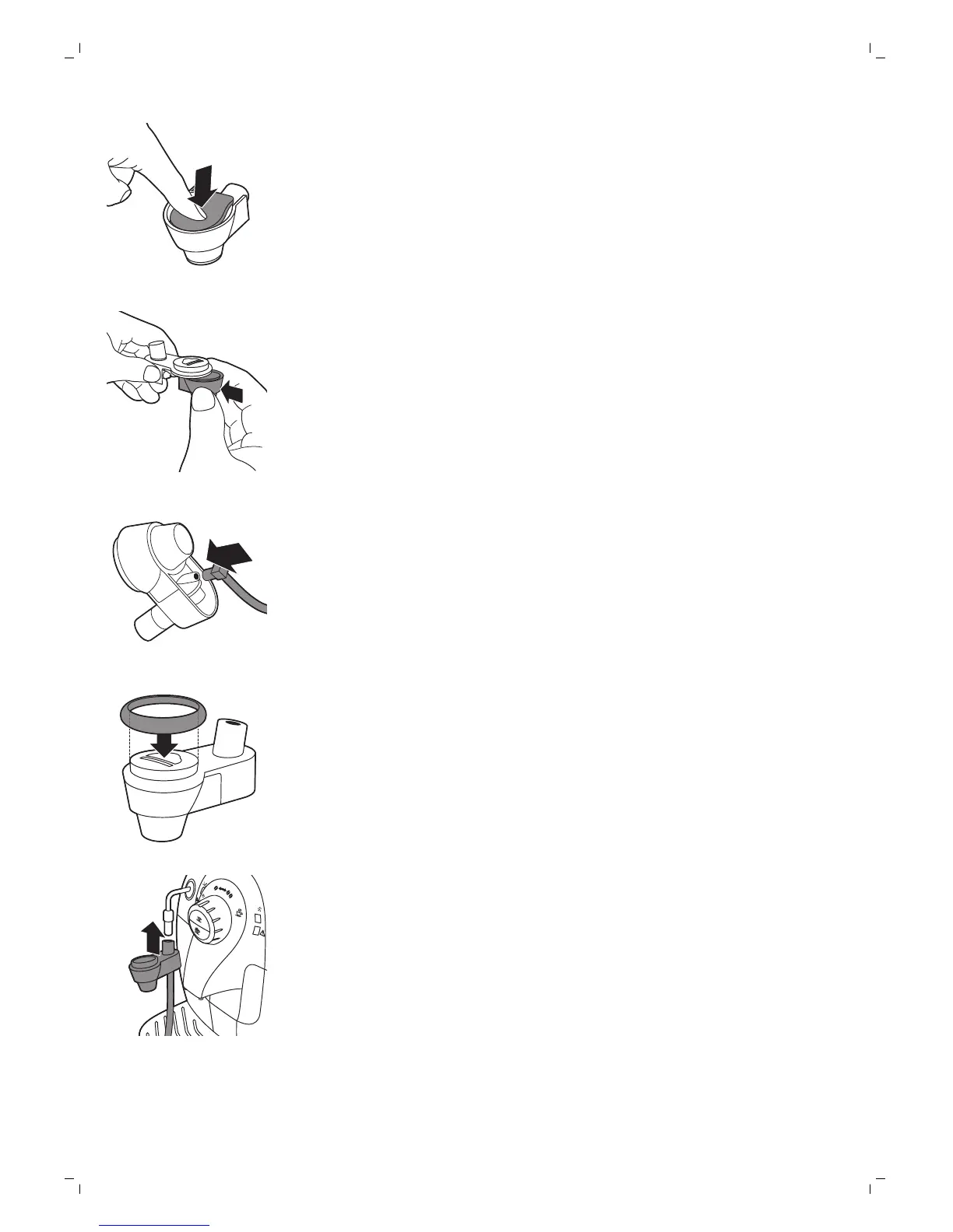 7 重新組裝時,將橡膠蓋的中間往奶泡機按下,並確認已經安裝到位。