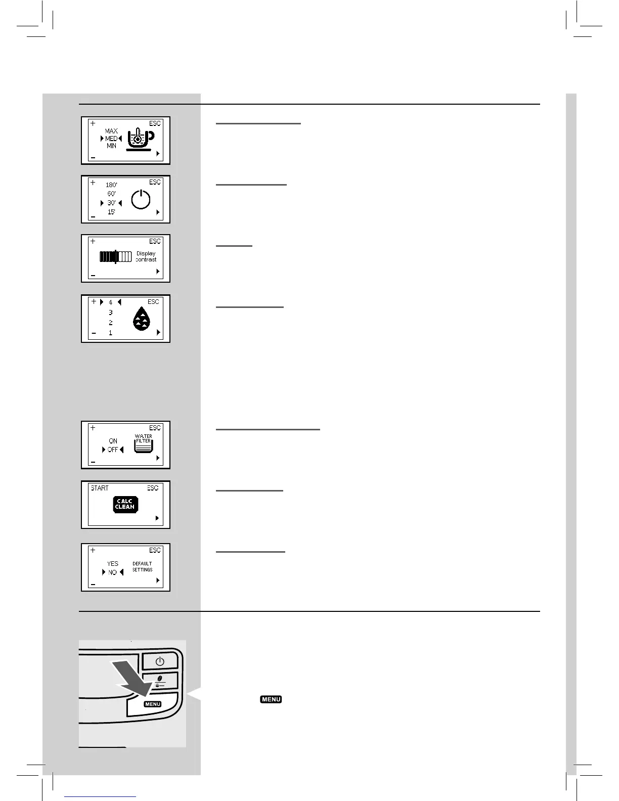 This function allows you to adjust the co ee brewing temperature.