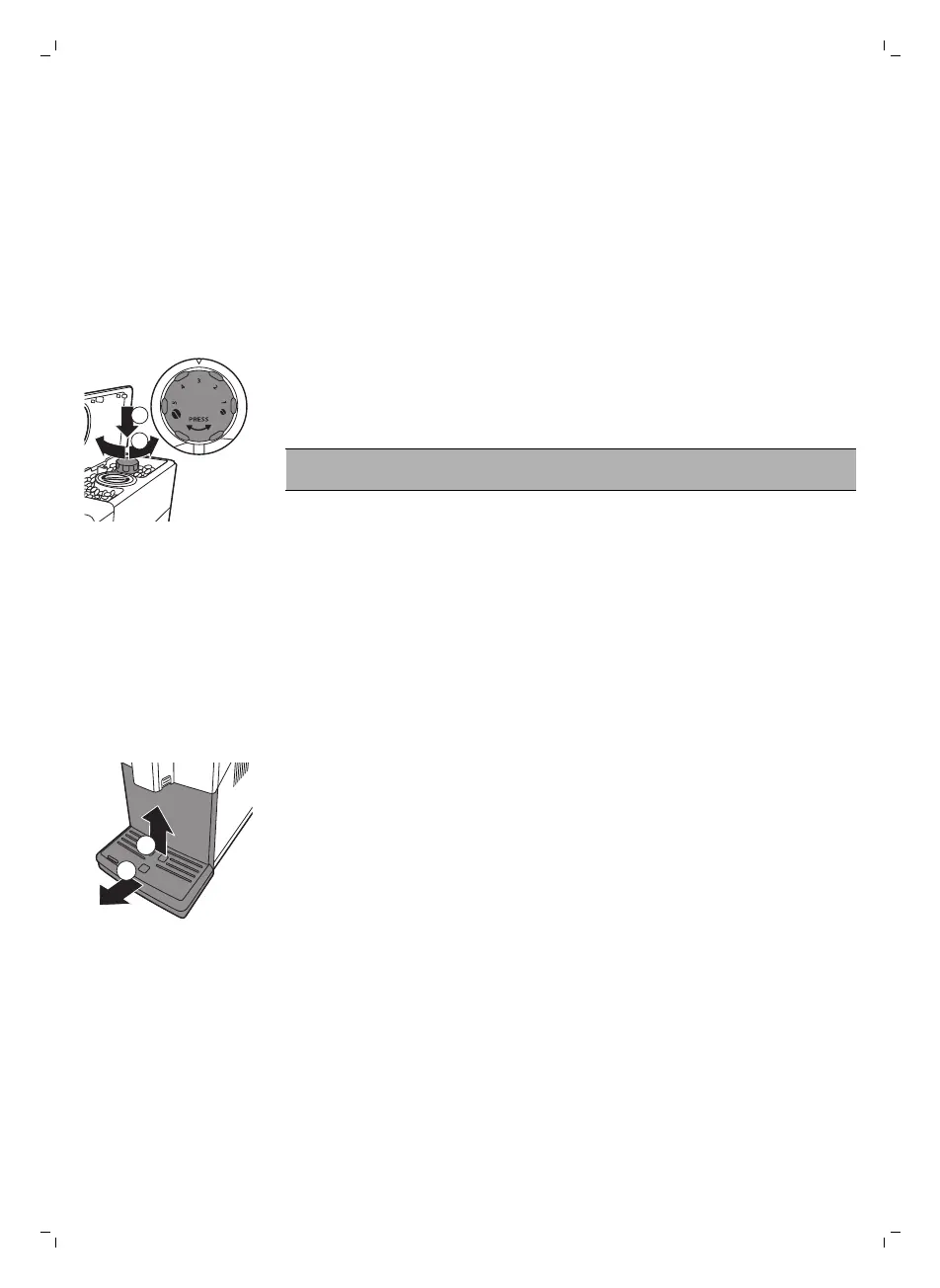 2 Entfernen Sie den Kaffeesatzbehälter immer bei eingeschalteter