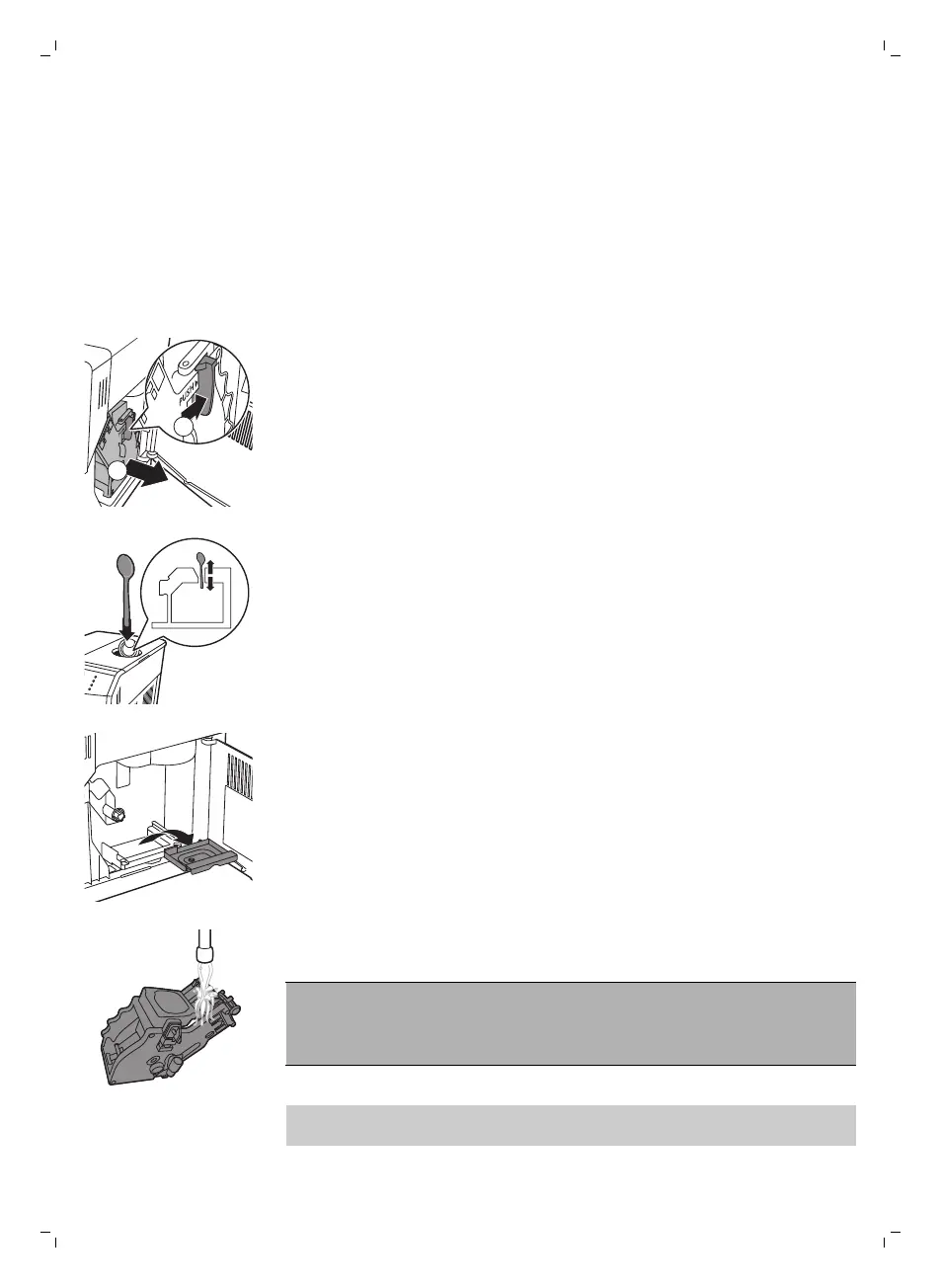 8 Entnehmen und spülen Sie den Kaffeesatzbehälter unter lauwarmem