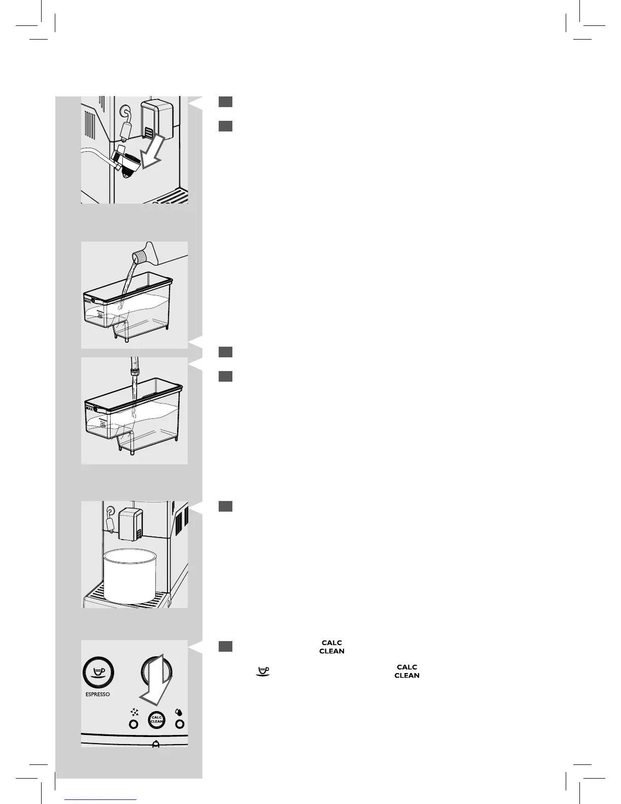 Fill the water tank with fresh water up to the CALC CLEAN level and put