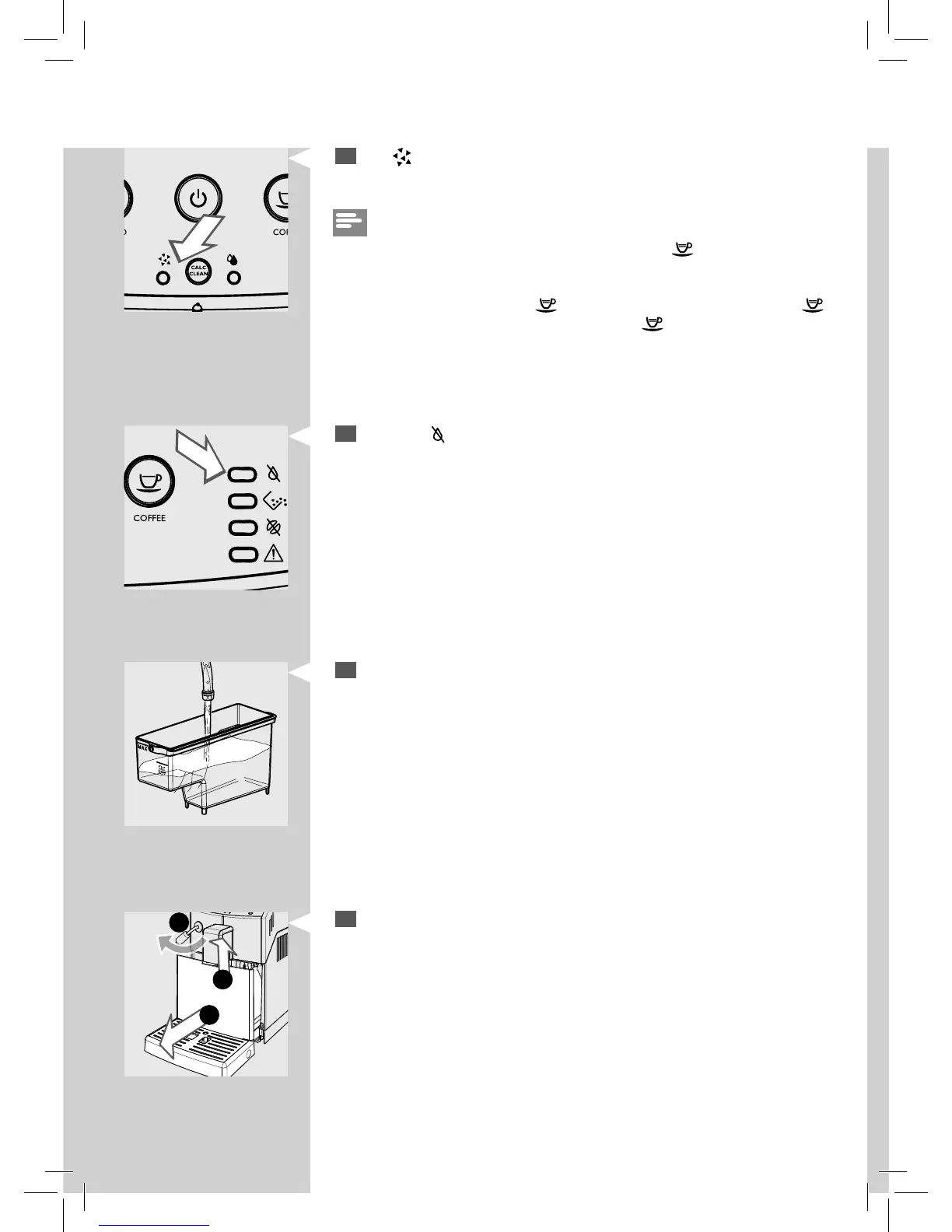 Rinse the water tank and ll it with fresh water up to the MAX level. Put