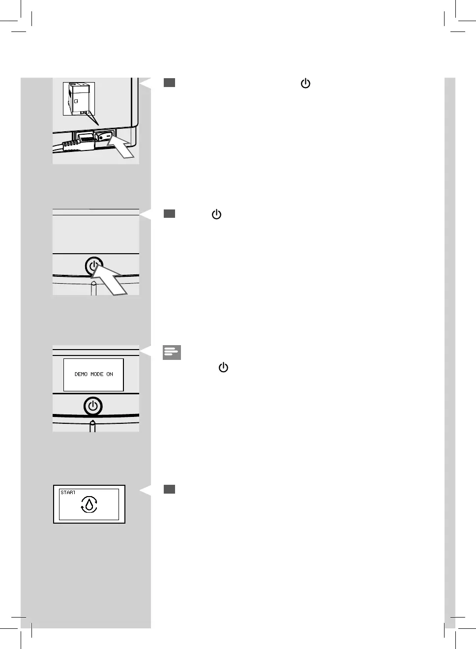 Switch the power button to "I". The “ ” button ashes.