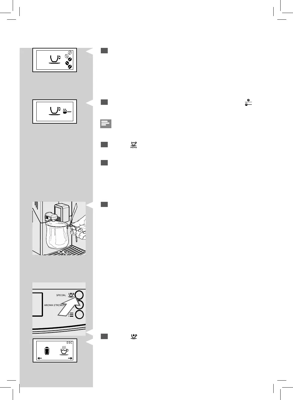 Select the pre-ground co ee brewing function by pressing the “ ”