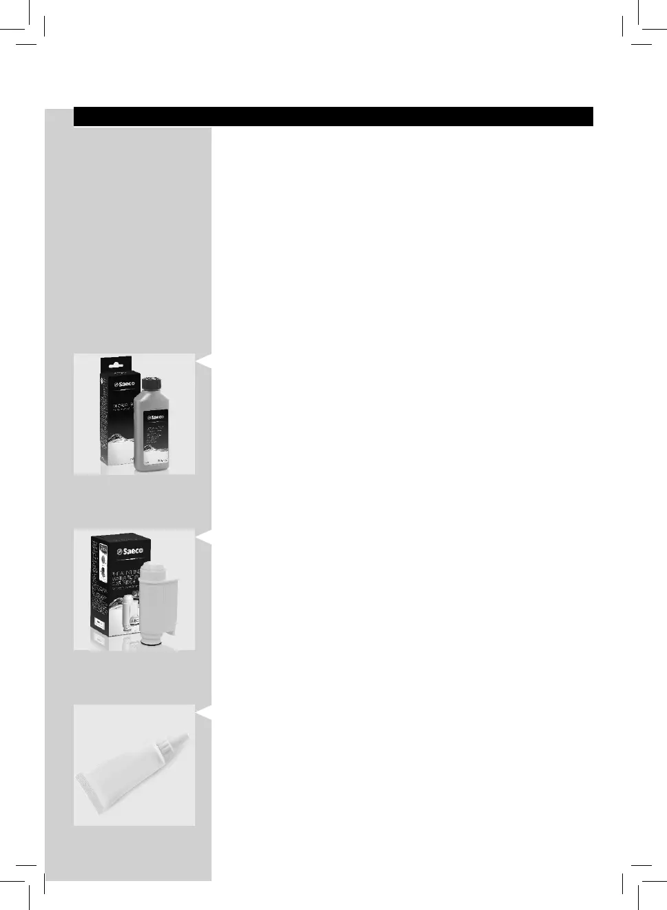 For cleaning and descaling, use Saeco maintenance products only.