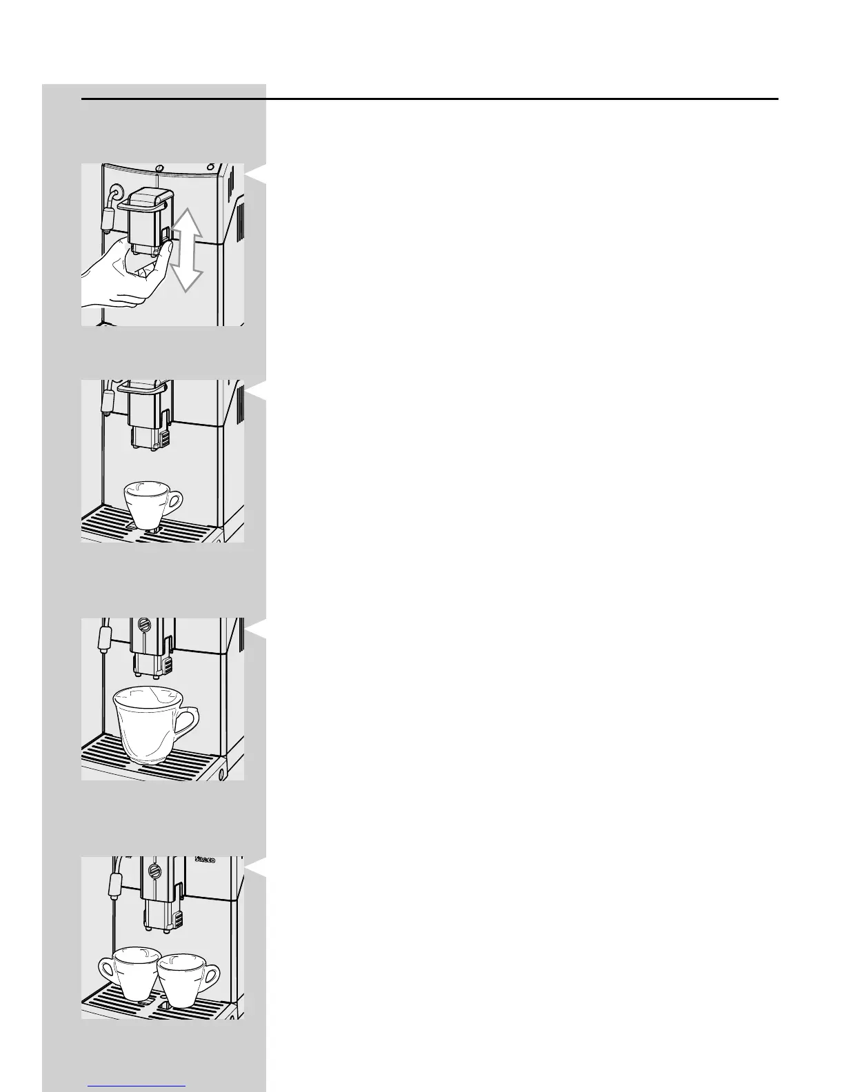 The height of the co ee dispensing spout can be adjusted to better t the