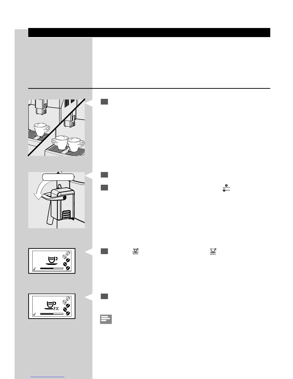 Place 1 or 2 cups under the co ee dispensing spout.