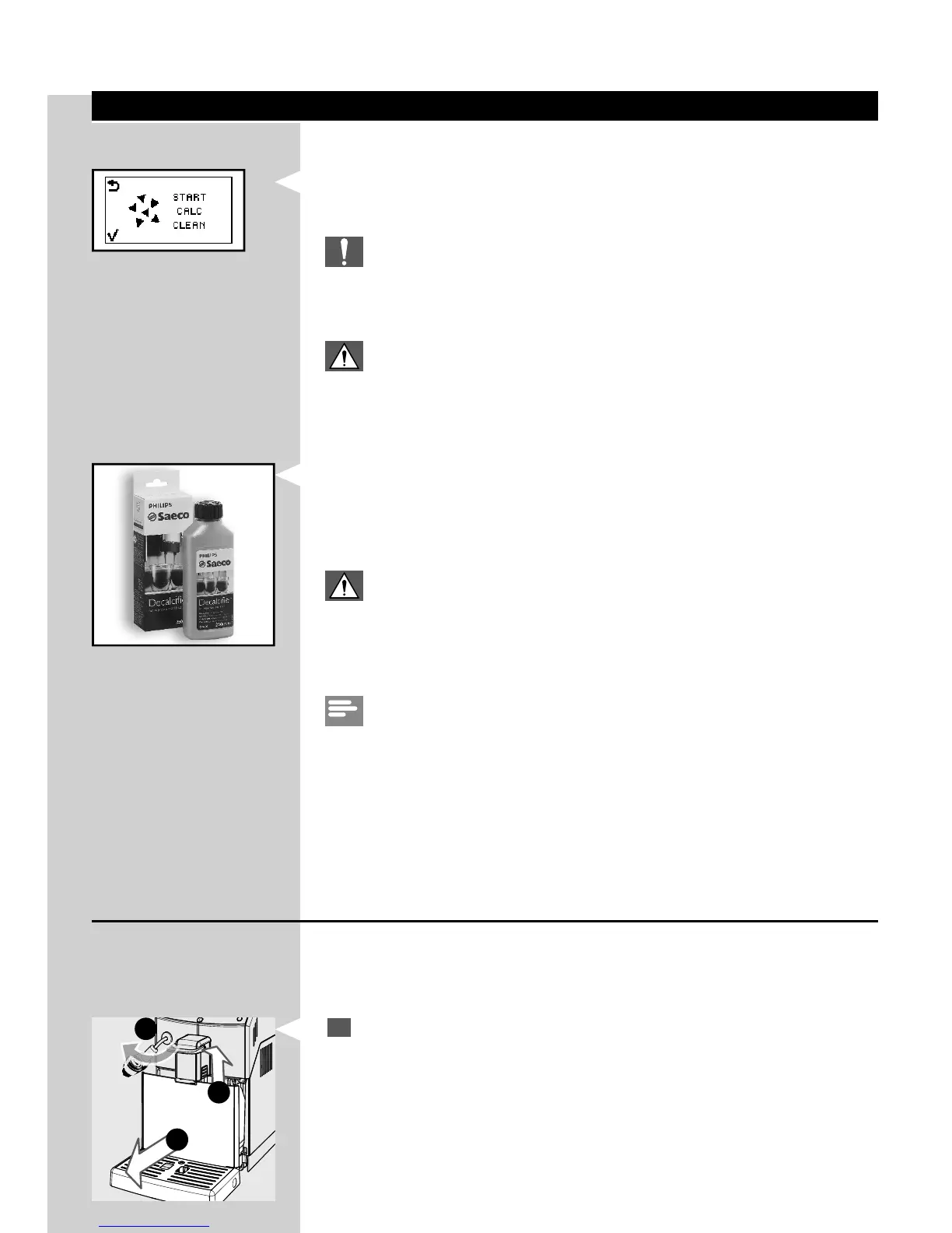 To perform the descaling cycle, follow the steps below.