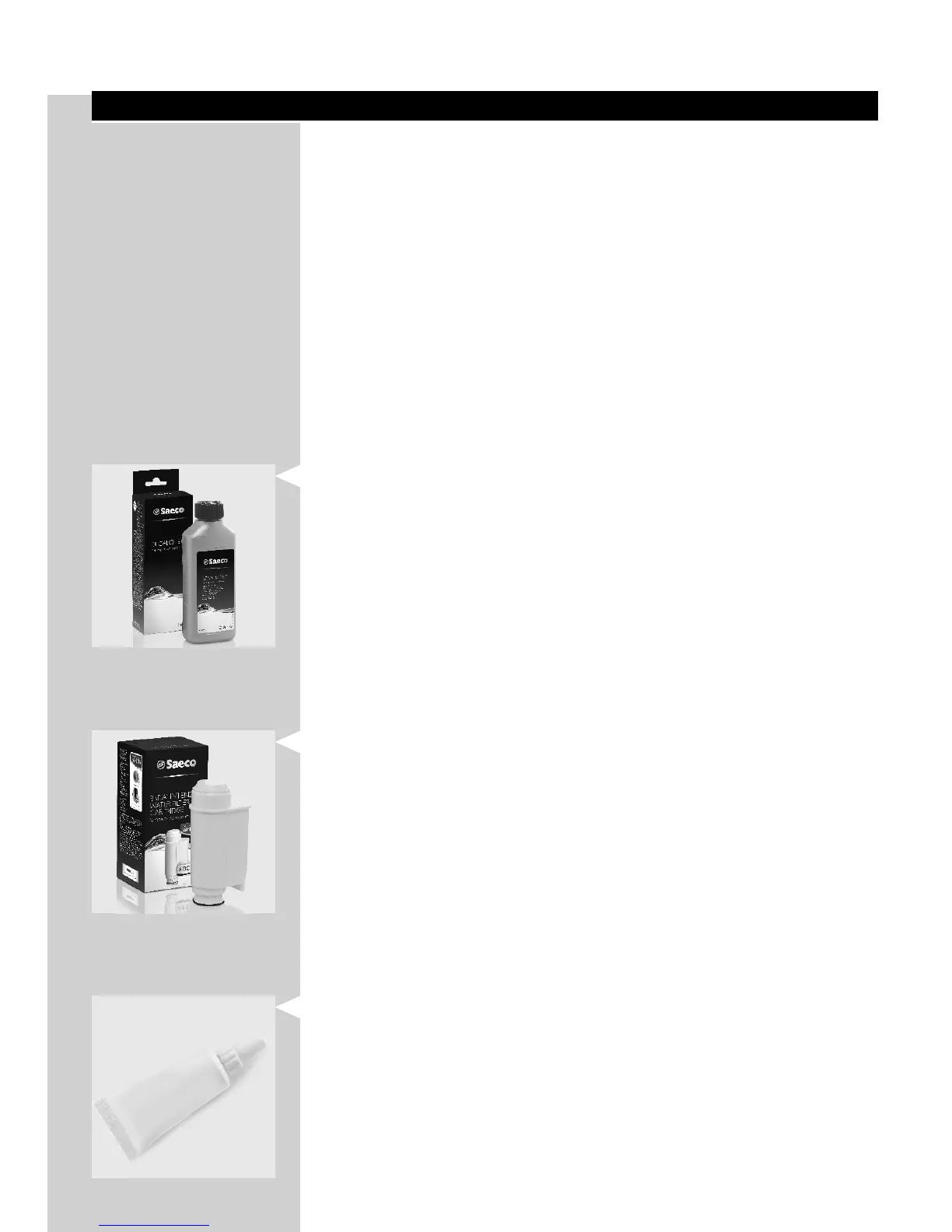For cleaning and descaling, use Saeco maintenance products only.
