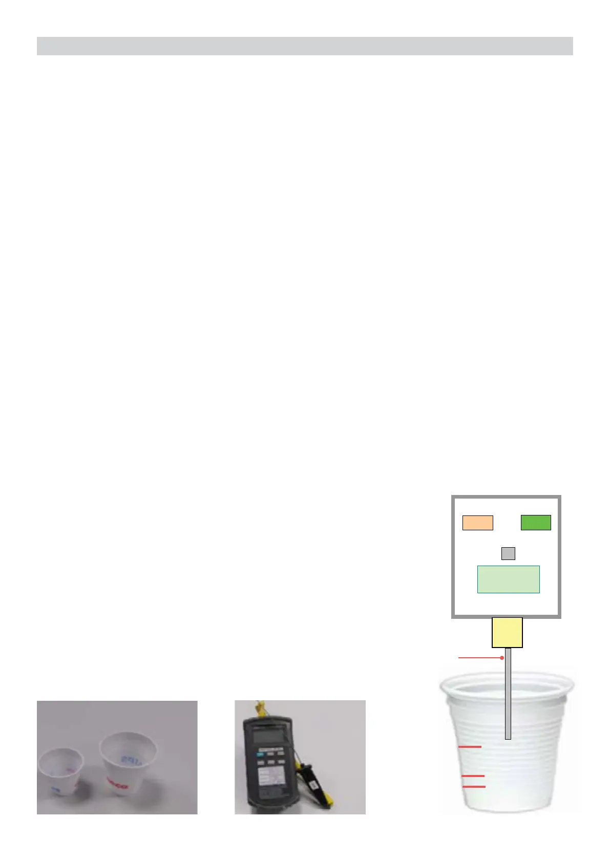 2. e temperature in the cup is measured by immersing the probe of the thermometer up to touch the bot