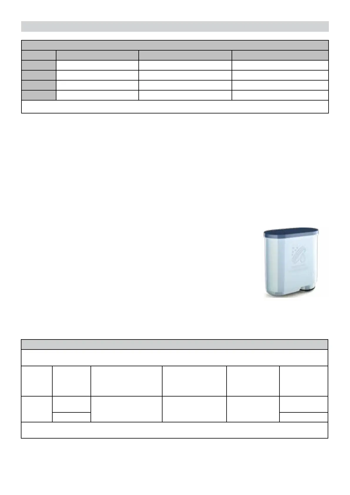 calculates as in the table “Descaling cycle frequency with brita lter (HD models).