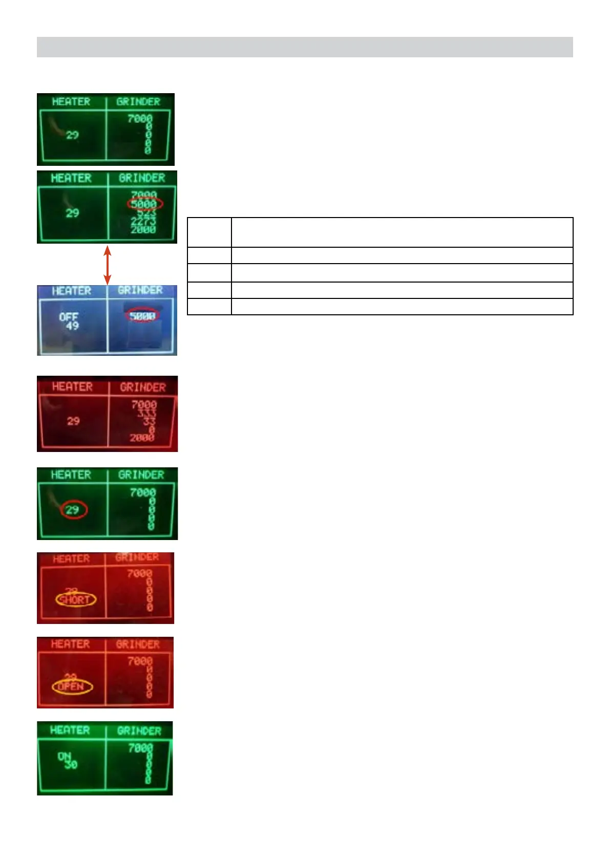 Page 5 (Heater , Grinder): This test directs the correct operation of the Boiler and the Grinder: