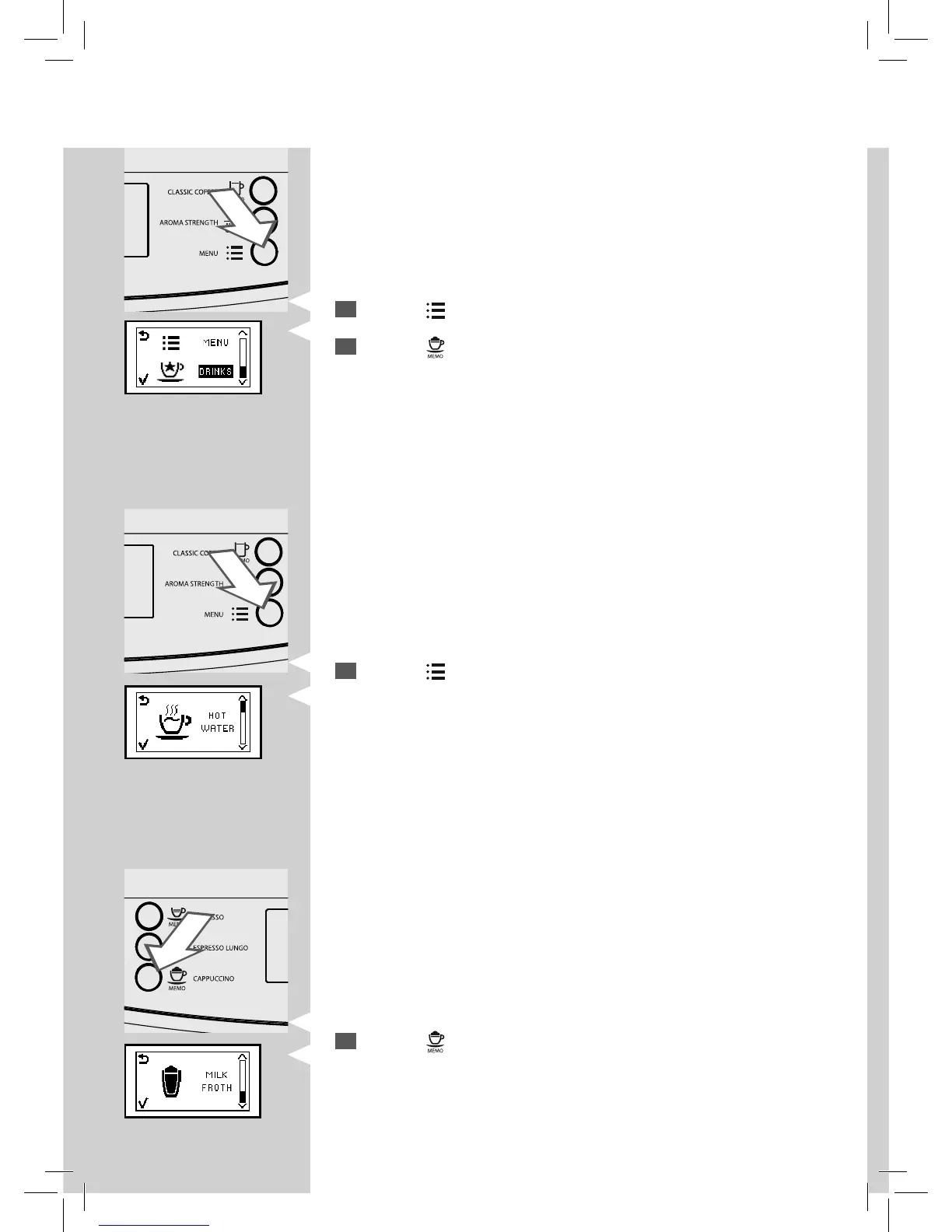 Press the button to select frothed milk.
