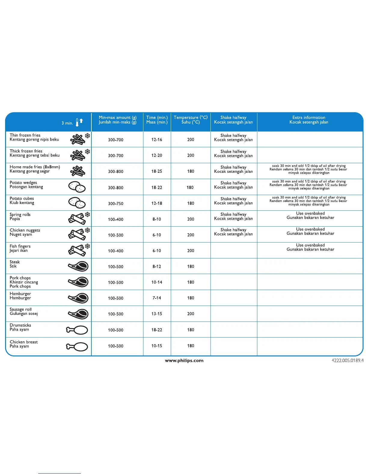 ปริมาณตํ่าสุด-สูงสุด (กรัม) อุณหภูมิ (°C)เวลา (นาที)