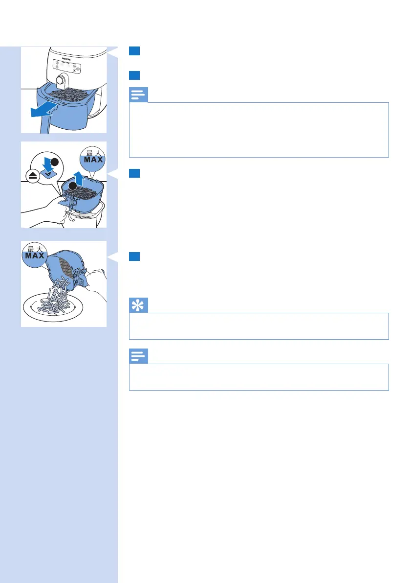• When a batch of ingredients is ready, the Airfryer is instantly ready