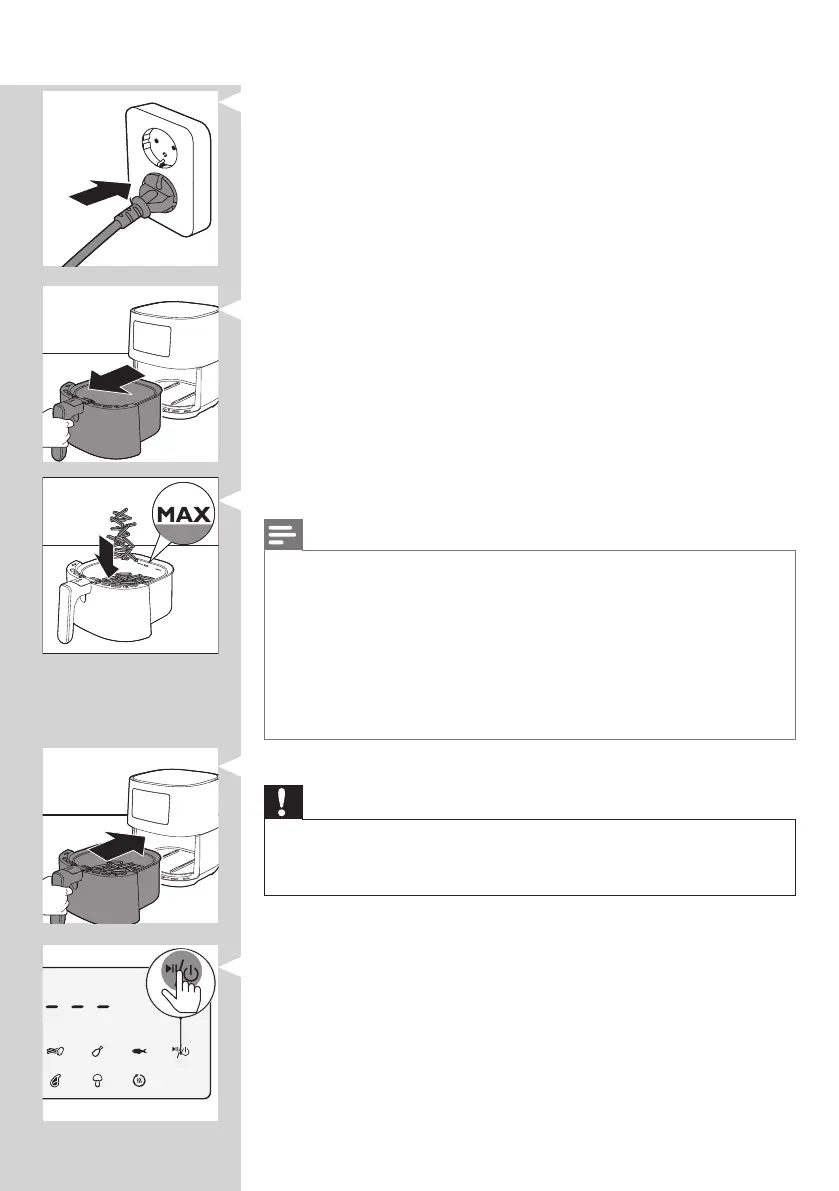 • Tava veya sepet çok sıcak olacağından kullanım sırasında veya