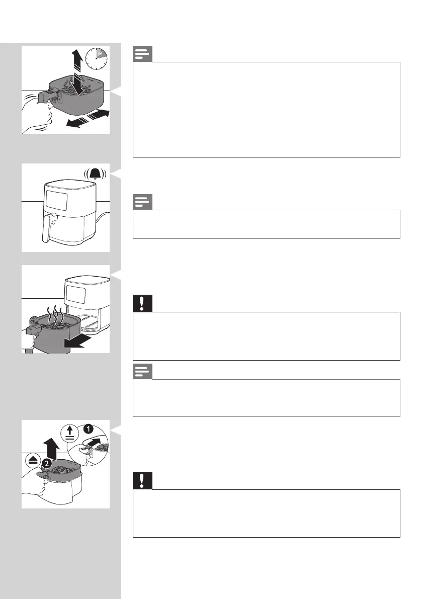 • El recipiente de la Airfryer estará caliente tras el proceso de