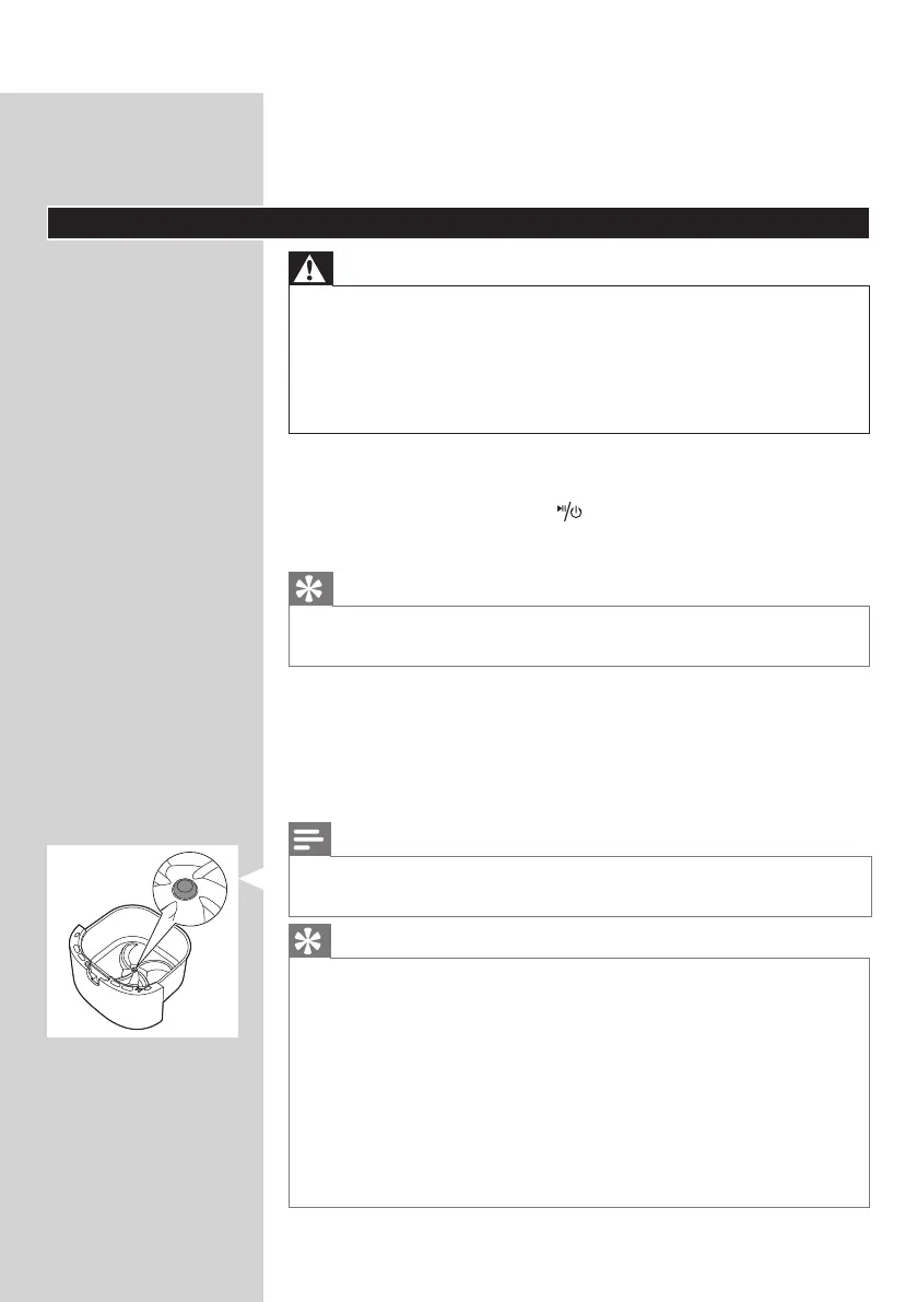 • Verwijder de pan en de mand als u de Airfryer sneller wilt laten
