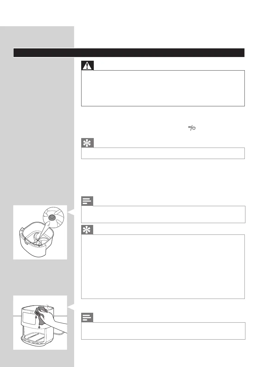 • Airfryer'ın daha hızlı soğuması için tavayı ve sepeti çıkarın.