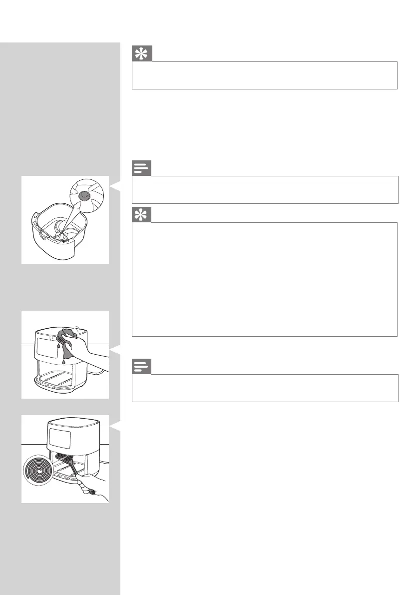 • Si es necesario, se pueden retirar los restos de alimentos pegados a