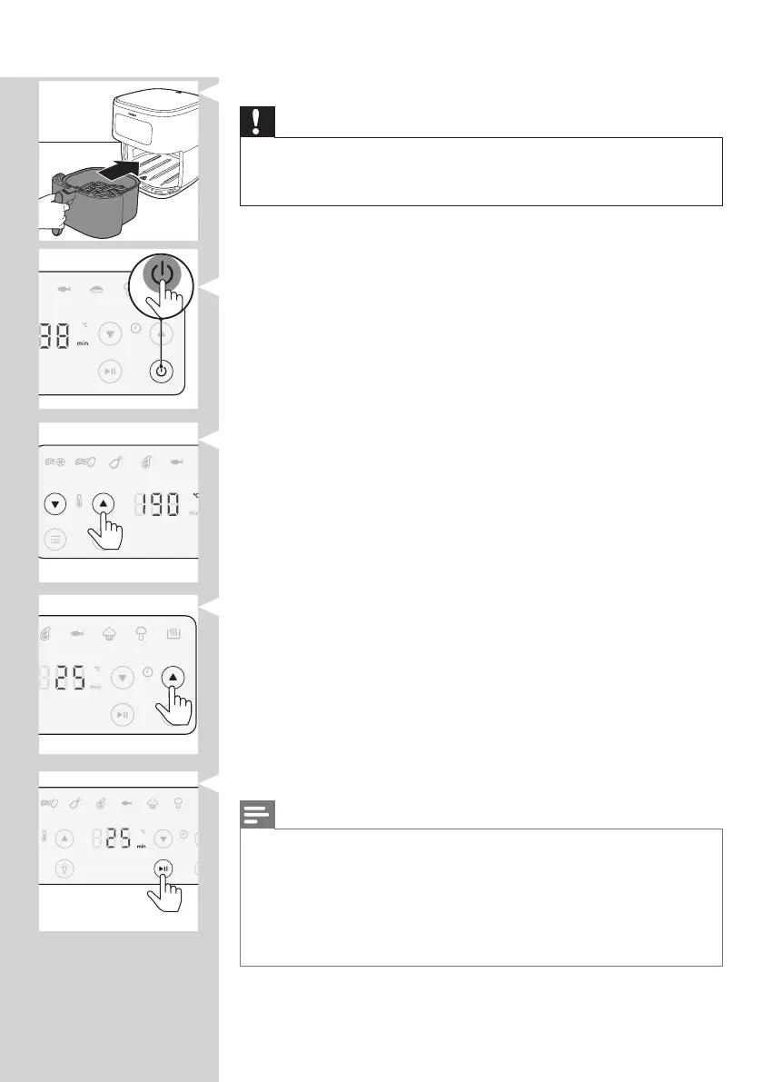 4 Put the pan with the basket back into the Airfryer.
