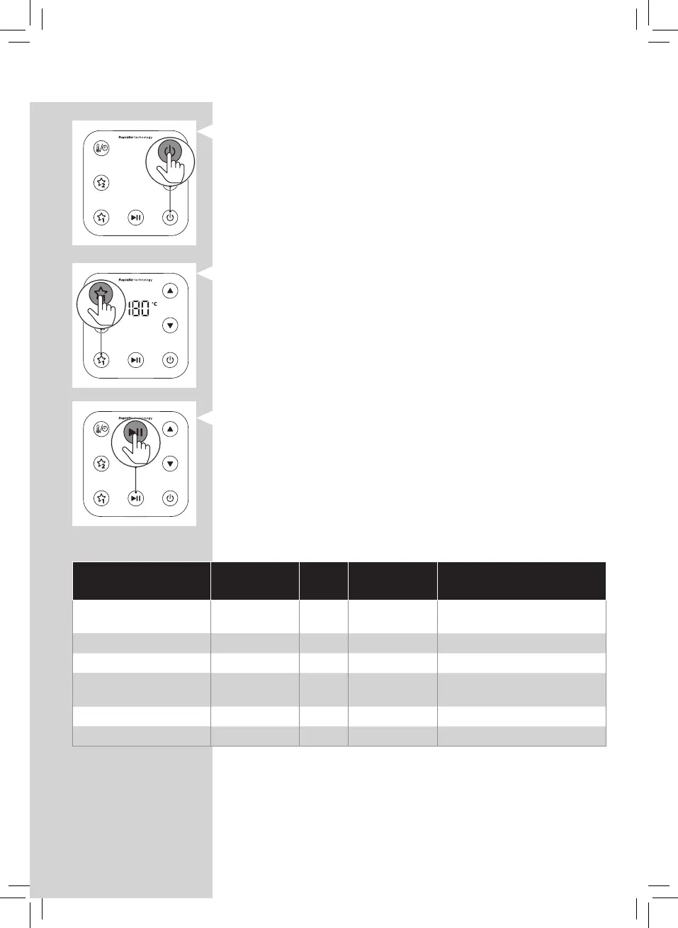 Mixed vegetables 100–500 g 3–6 200°C/400°F Fridge temperature.