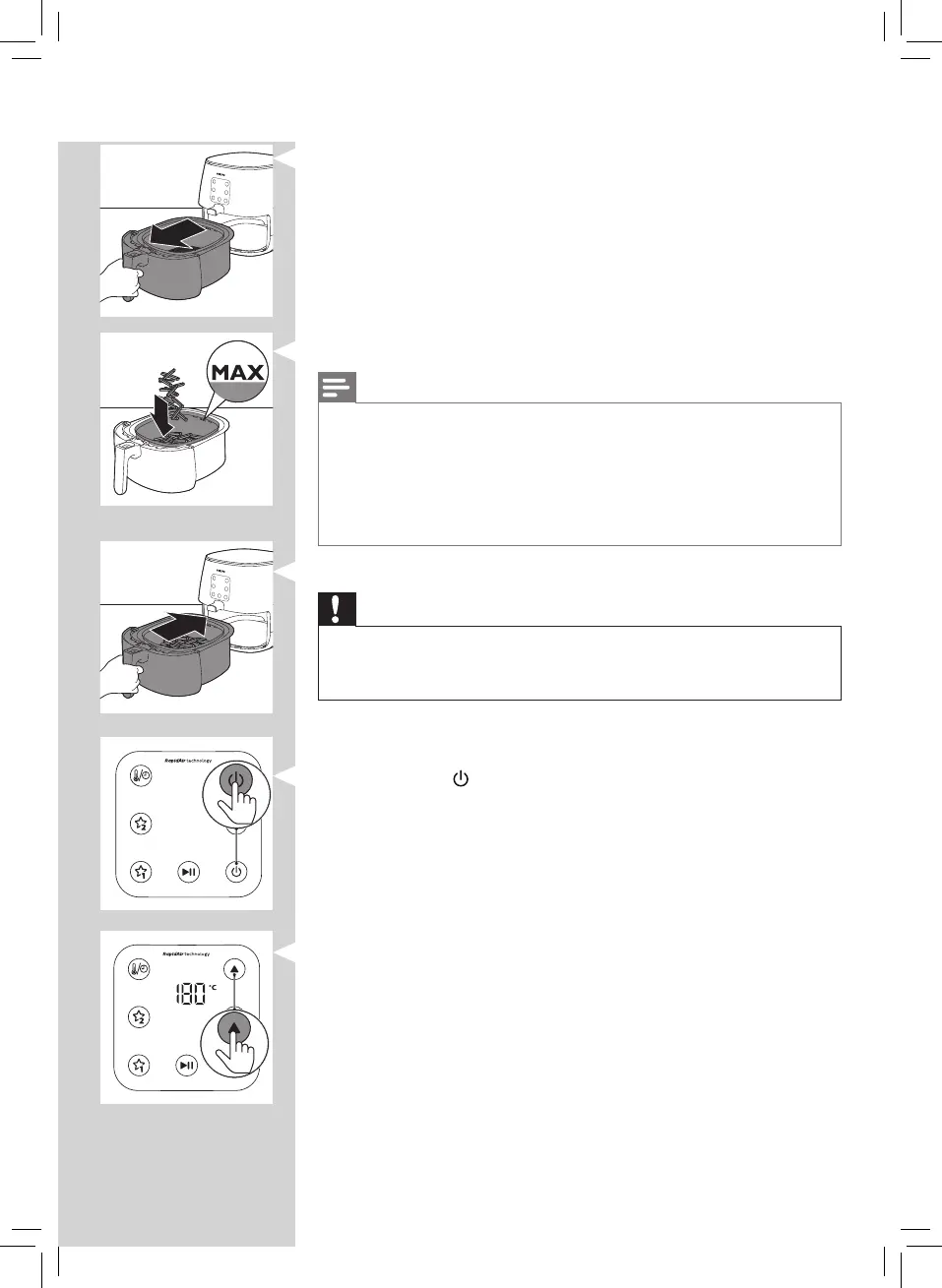 食材量超过 MAX 指示线,因为这可能影响最终的煎炸效果。