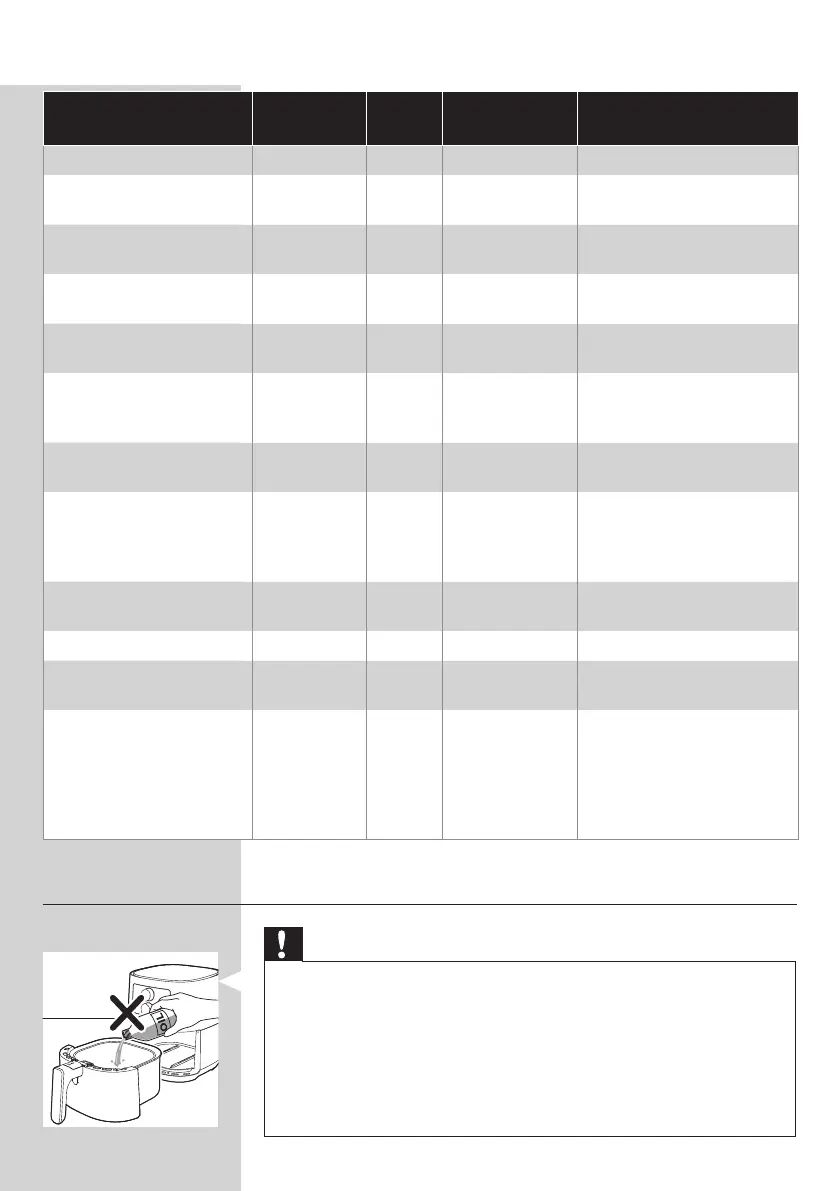 • This is an Airfryer that works on hot air. Do not ll the pan with oil, frying fat