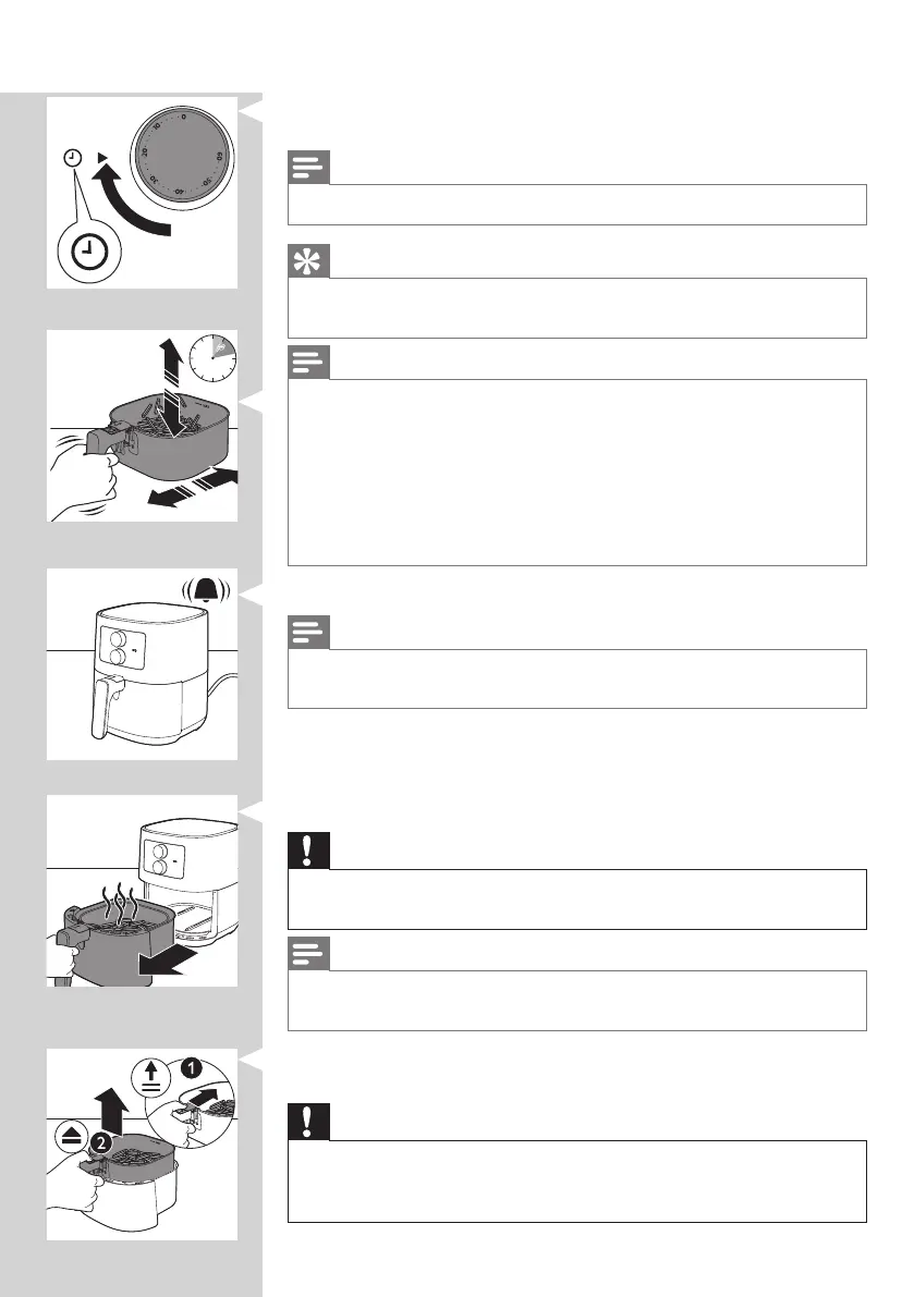 • The Airfryer pan is hot after the cooking process. Always place it on a heat