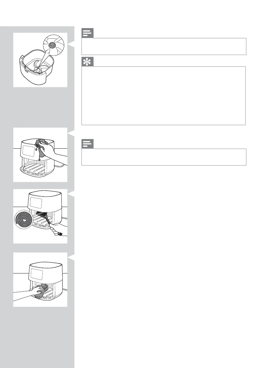 • If food residues stuck to the pan or the basket, you can soak them in hot water