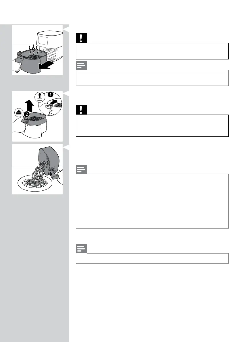 • The Airfryer pan is hot after the cooking process. Always place it on a heat