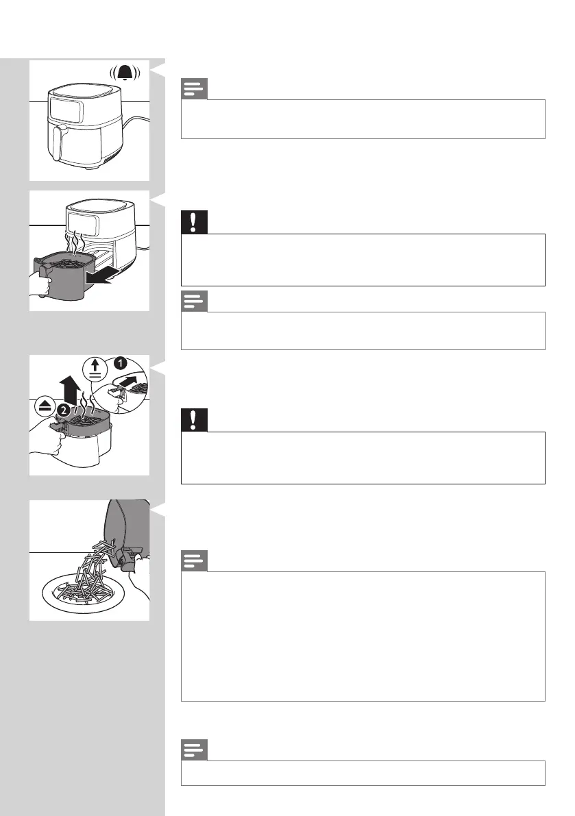 • The Airfryer pan is hot after the cooking process. Always place it