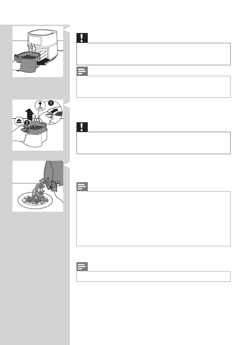 • De pan van de Airfryer is heet na het koken. Plaats de pan altijd