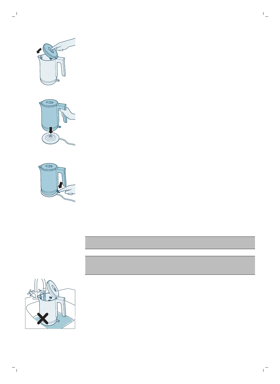 Никога не почиствайте електрическата кана в мивката докато е пълна.