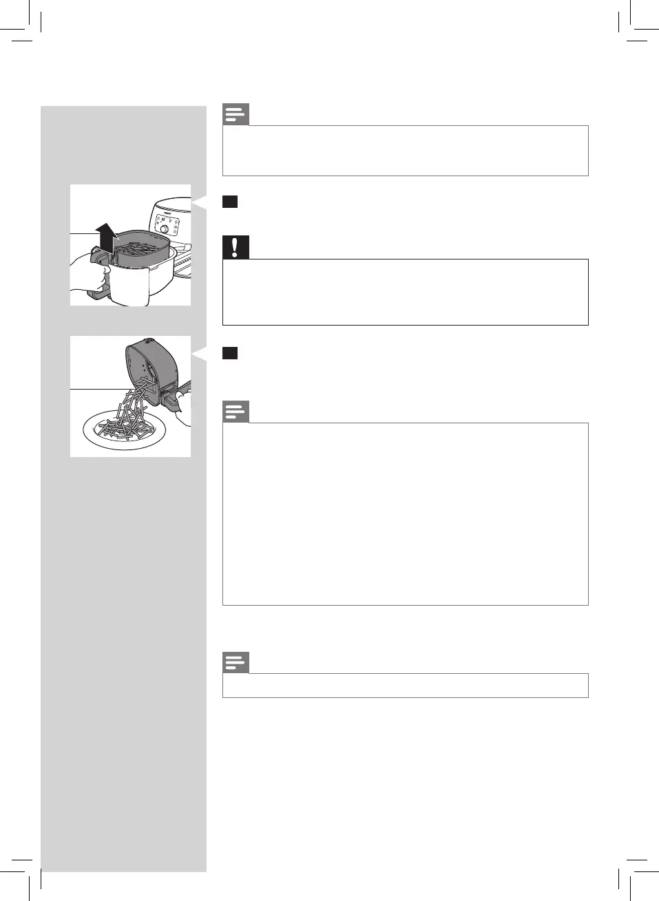 13 To remove small ingredients (e.g. fries), lift the basket out