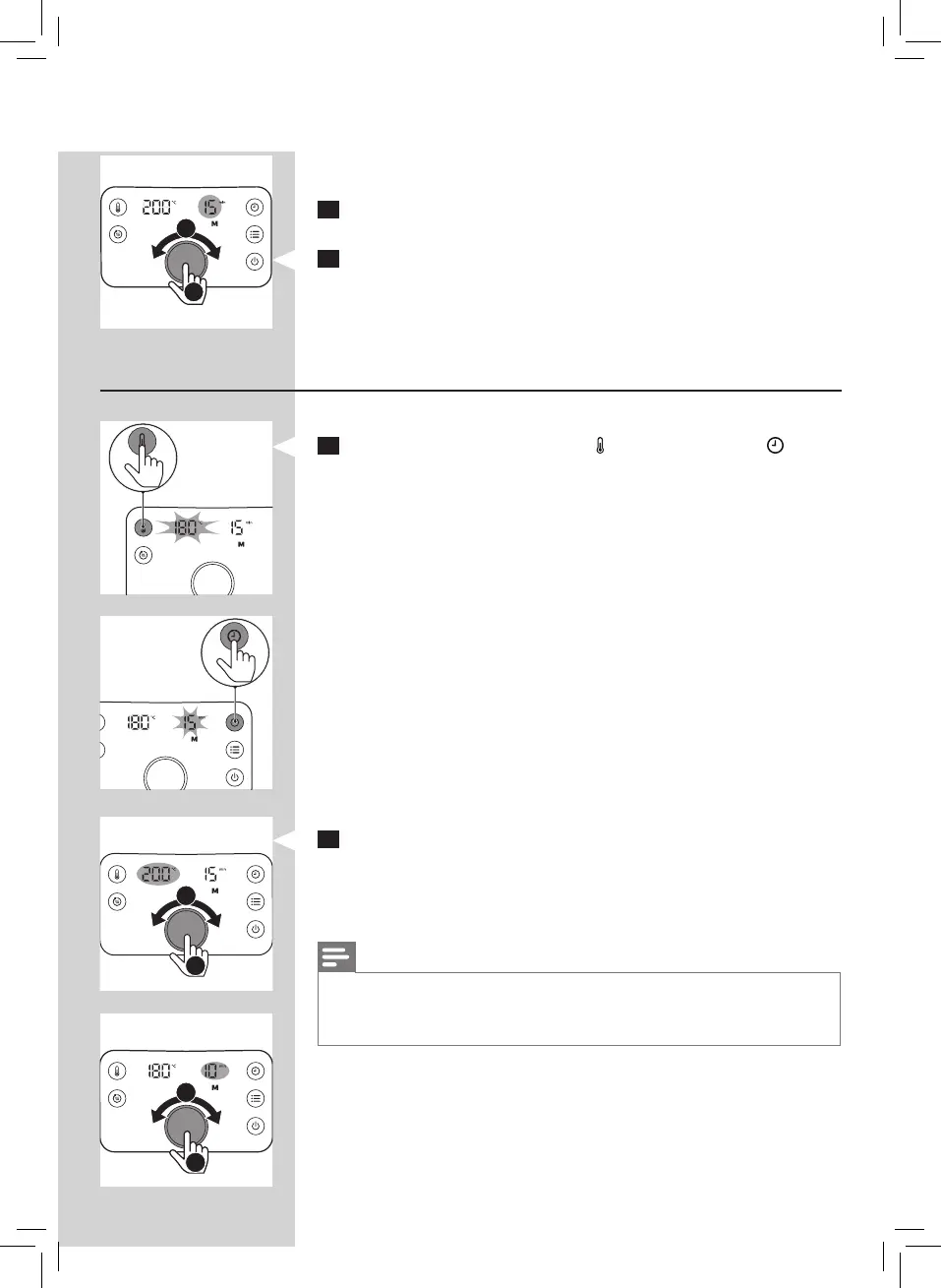 » Zum Bestätigen der Gartemperatur oder -zeit drücken