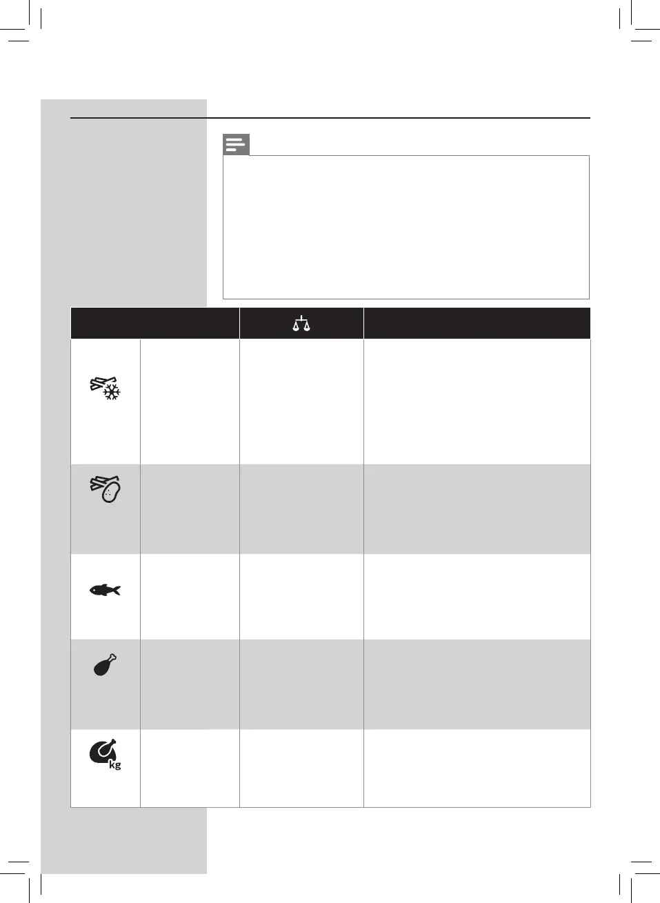 Lebensmitteltabelle für Smart Chef-Programme