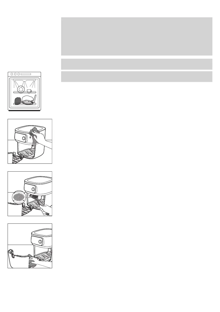 5 Pulire il cassetto e la parte interna dell'apparecchio con acqua calda e una