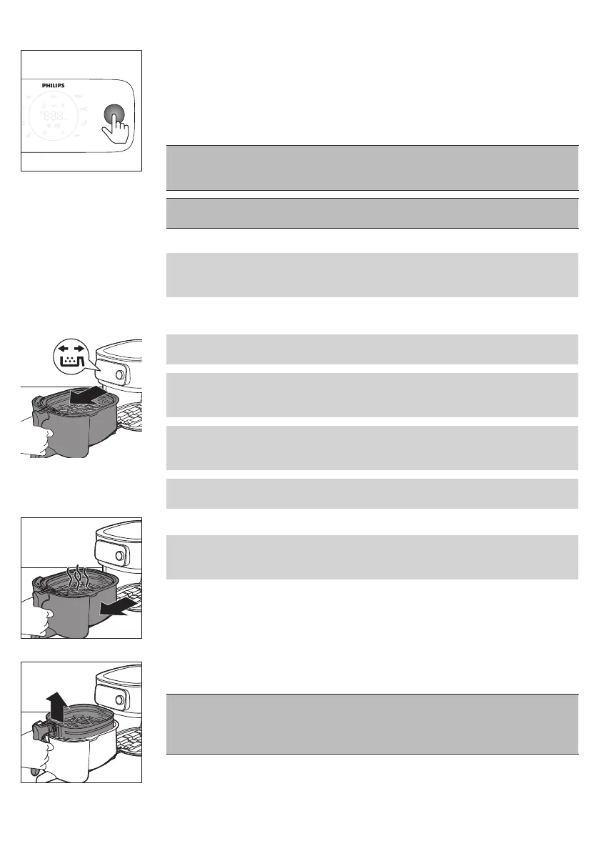 tavă şi să îl scuturi. Apoi, introdu tava cu coşul înapoi în Airfryer. Aparatul va