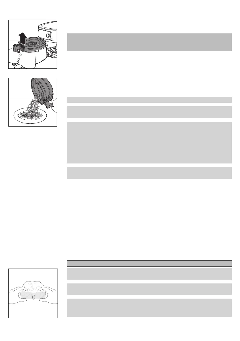 Примітка. Великі або крихкі продукти виймайте щипцями.