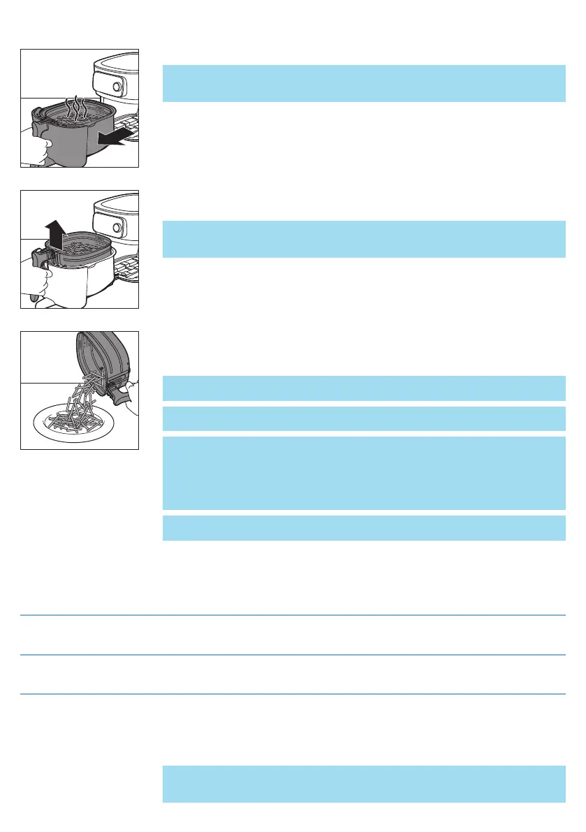 13 To remove small ingredients (e.g. fries), lift the basket out of the pan by the