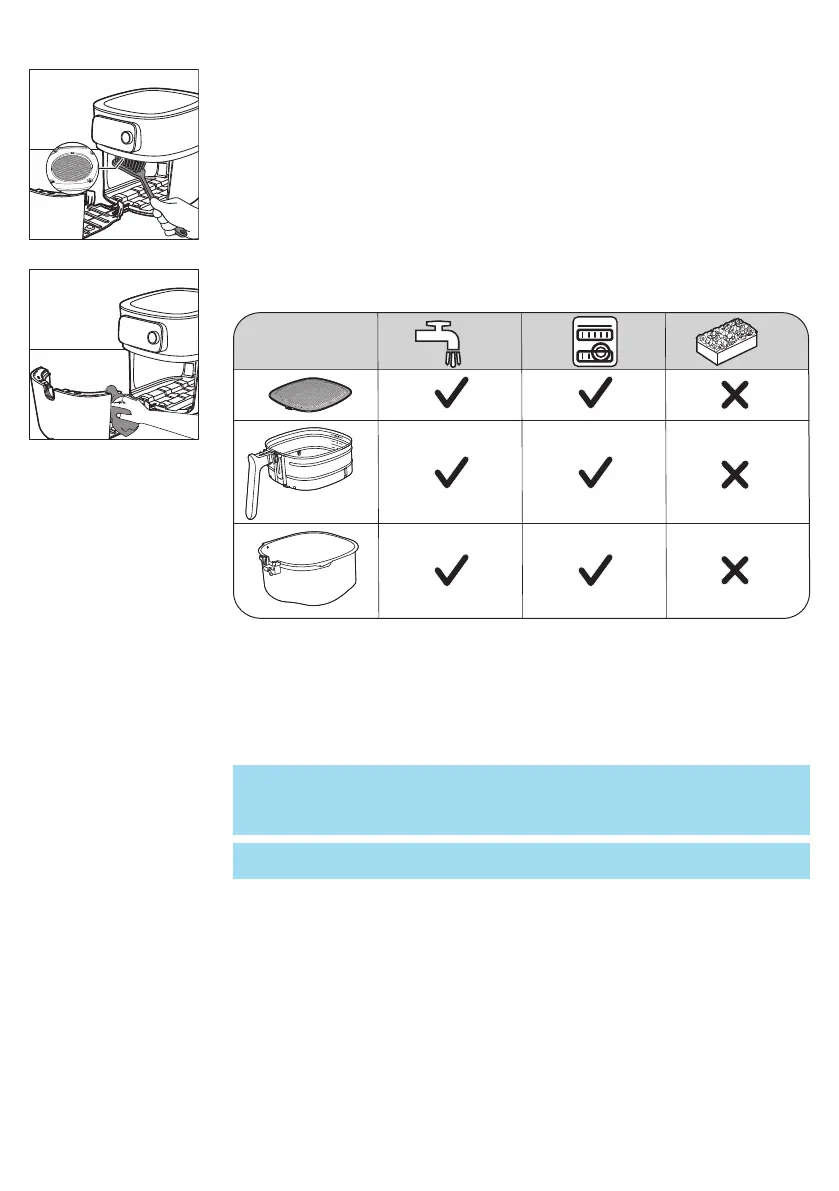 5 Pulire il cassetto e la parte interna dell'apparecchio con acqua calda e una