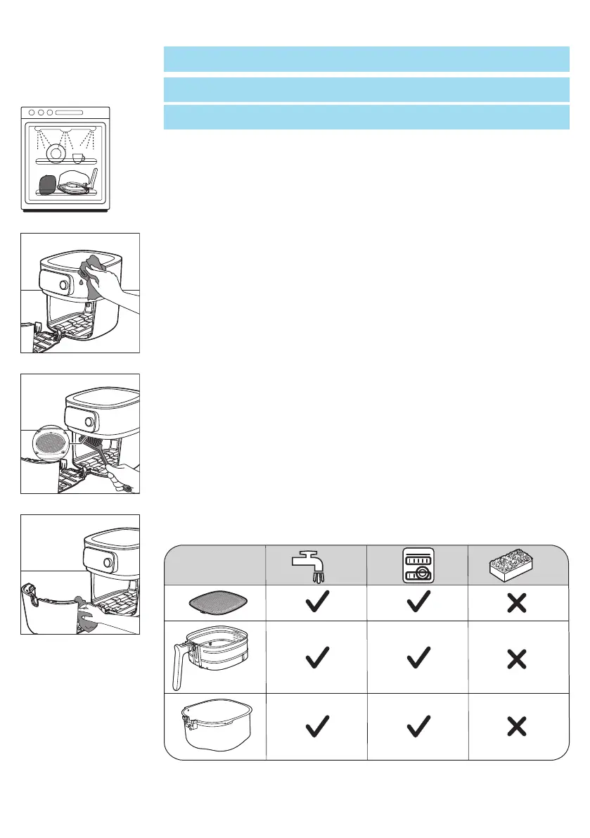 5 Clean the drawer and inside of the appliance with hot water and a non-